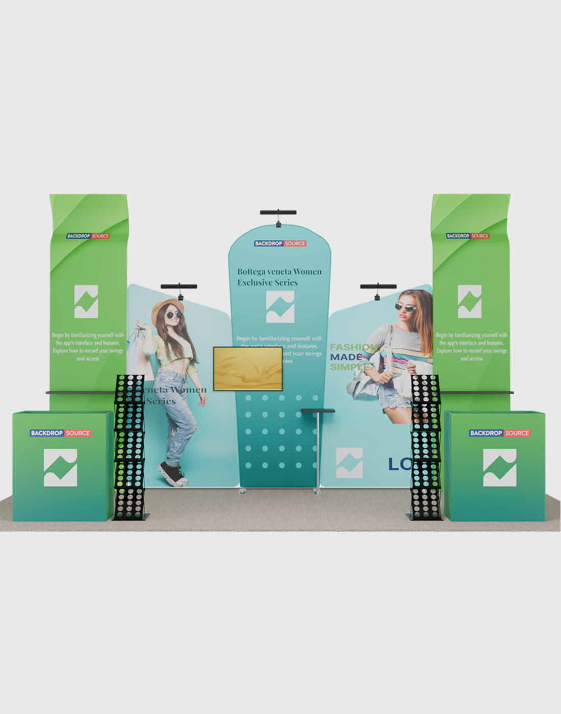 • Includes seven printed backdrops with cotton bags for flexible messaging and easy transport