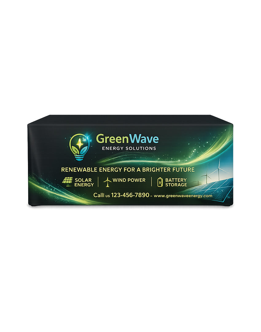 Available Dimensions: Standard 4ft, 6ft, and 8ft sizes, with custom sizing available to fit various event and display tables
