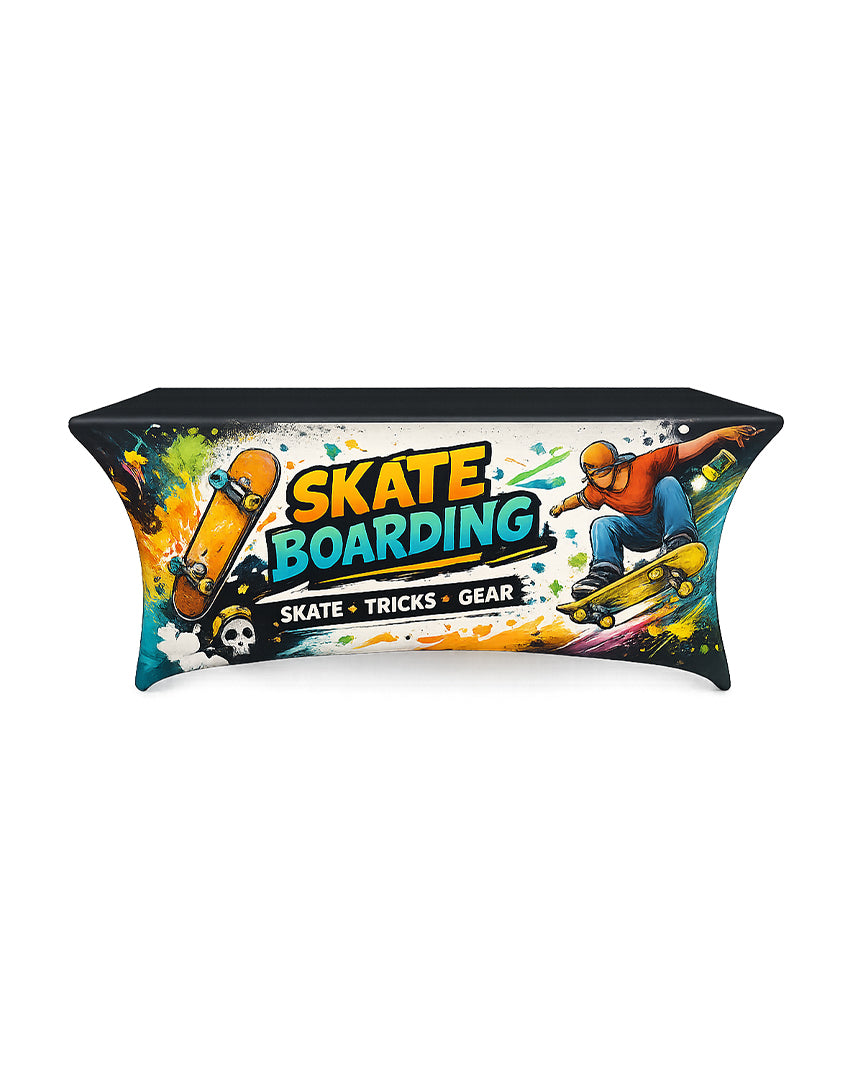 Designed to stretch cleanly over standard tables, this stretch-fit table cover delivers a crisp, wrinkle-free appearance that holds its shape throughout the event. The elastic fabric stays firmly in place, creating a modern, streamlined look that keeps attention on your brand—not the table.