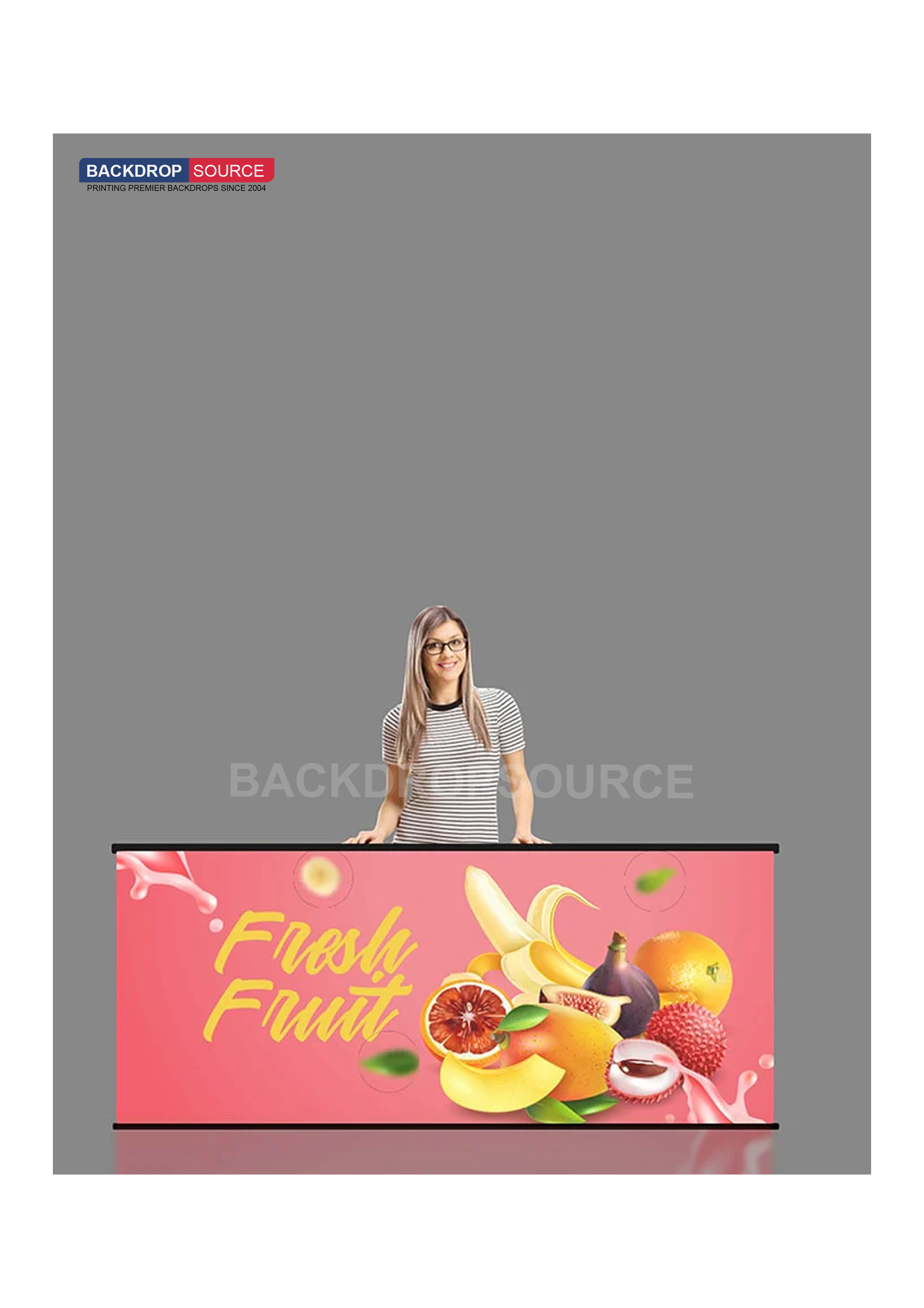 To ensure you're confident before we print, we also offer a FREE 2D mockup preview. Use the “Request Free 2D Mockup Image” button at the top of the page and send us your content or files. We'll show you how your backdrop will look in real life.