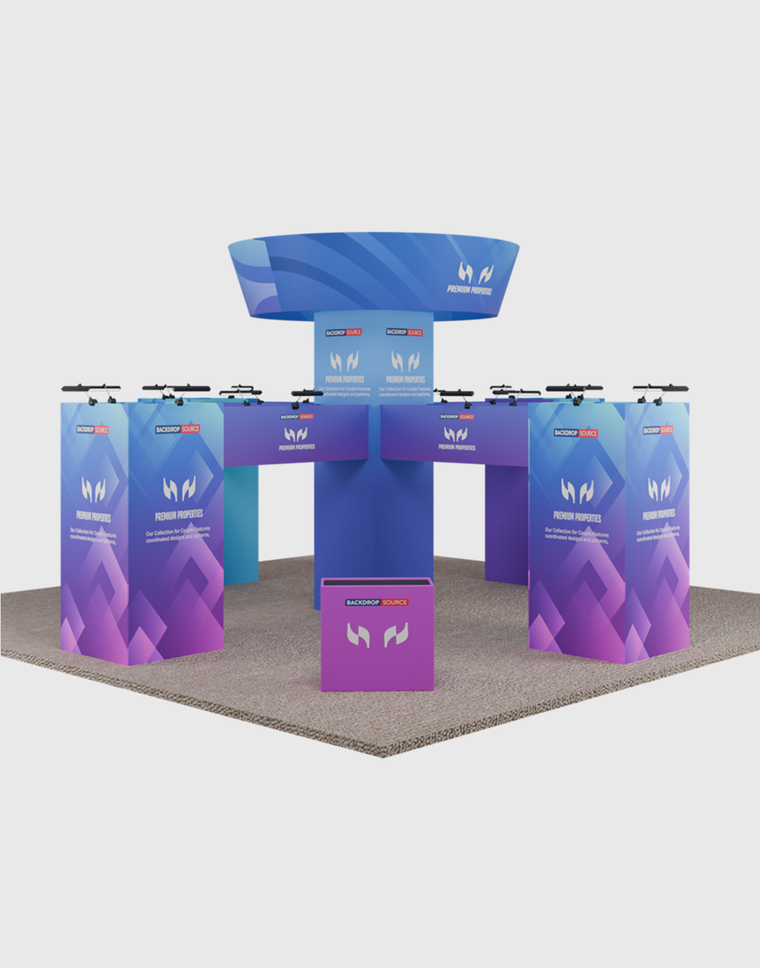 Modular Booth Kits 30ft x 30ft are designed to transform large exhibit spaces into dynamic, branded environments that leave a lasting impression. These kits feature a combination of seamless backwalls, arches, counters, and accessories—all built with lightweight, durable aluminum frames and vibrant, dye-sublimated fabric graphics. The modular design allows for multiple configurations, giving you flexibility to adapt your layout to different events or floorplans. Tool-free assembly ensures fast setup, while the bold visuals and open layout invite visitor interaction. Ideal for trade shows, expos, and brand activations, Modular Booth Kits 30ft x 30ft offer a polished, professional presentation with the freedom to scale or customize. Make a statement with a spacious, high-impact solution that truly showcases your brand.
